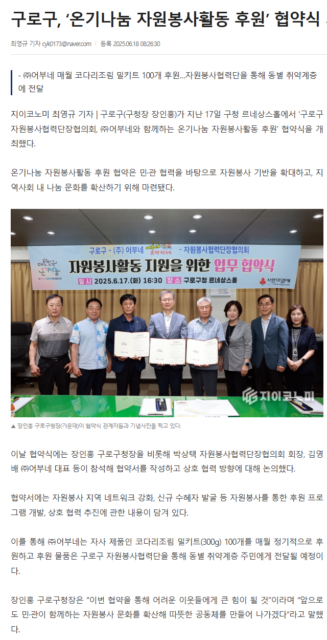 구로구 & 어부네코다리 밀키트 후원 업무협약식 페이지 정보 작성자 최고관리자 댓글 댓글 0건 조회Hit 114회 작성일Date 25-09-05 10:53 본문 구로구 & 어부네코다리 밀키트 후원 업무협약식 추천0 비추천0 페이스북 공유 트위터 공유 목록 다음글중구 & 어부네코다리 밀키트 후원 업무협약식 25.09.05 댓글 0 댓글목록 등록된 댓글이 없습니다.